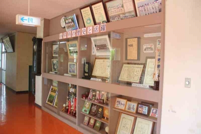 歴史ある小平中には、これまでの校舎の写真や生徒の活躍の記録などが残されています。