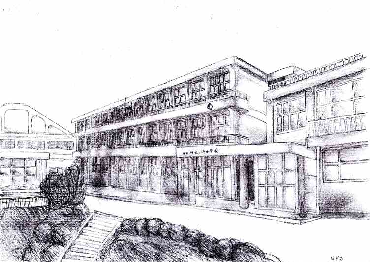 柔らかなタッチで濃淡が付けられ、校舎の雰囲気がよく表されています。