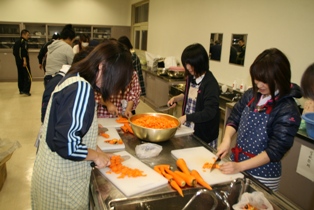 ○PTA活動・・・役員の方々を中心に、夕方から野菜を切る作業に協力をいただきました。