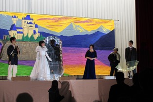 体育館の広いステージをさらに広がりのあるものにしようと、幕の前にも仮設のステージを作ってくれました。このような演出がステージに立つ一人ひとりを引き立ててくれました。