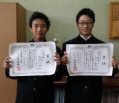 本校から優秀賞と優良賞を受賞する2名が式に臨み、多くの方々が見守る中、2人とも立派な態度で受賞することができました。