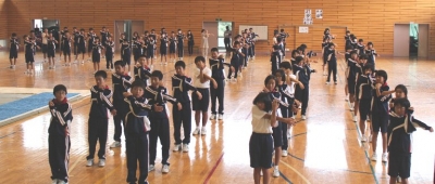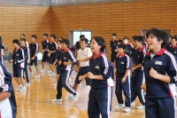 本校では3日(金)の全校集会の時間に、健康福祉課職員とインストラクターに来校いただき、全校生徒でこの体操に取り組みました。
