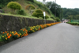 通学路にはマリーゴールドを植え、登校する生徒の気持ちを和ませています。