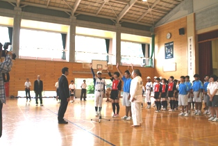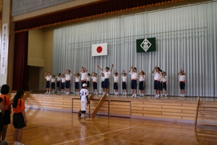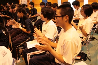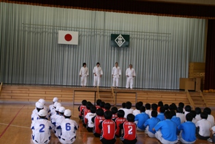 9日から開催される県南大会の向けて壮行会が行われました。各部の部長からは大会に臨む決意が心強く述べられました。さらに応援は、今年度も1年生が担当しました。元気がよいすがすがしい声の応援と足並み揃えた「ムカデの脱皮」が披露されました。足並みが揃いチームが一つになるという意味を持ったアイデア溢れた応援となり、1年生の元気が大いに伝わったことと思います。