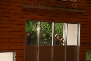 天候不順の中、多くの保護者の皆さまに協力をいただきまして奉仕作業を実施することができました。生徒は、校舎や体育館の窓ふきを中心にした清掃を行い学習環境を整えることができました。保護者の方々には、校舎や体育館の窓ふき、そして、機械や道具をお持ちの方には雨の中にもかかわらず校地内の草刈り作業を行っていただきました。参加いただいた保護者の皆さまに感謝申し上げます。