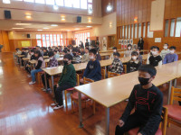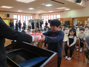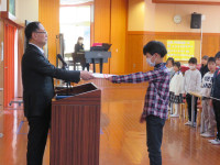 今日の全校集会では、交通安全立看板コンクールの賞状伝達も行われ、代表の6年生2名に「優秀賞」の賞状と盾が伝達されました。6年生の制作した立看板は、3月まで昇降口に展示しておりますので是非ご覧下さい。