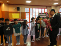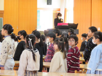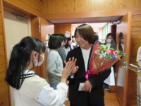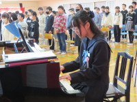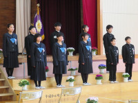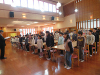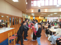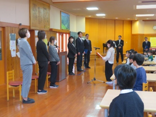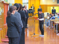 本校は、「4つのあ」として、「ありがとう」「あいさつ」「あんぜん」「あさどくしょ」を意識した生活をしています。校長先生から、「あー明るく」「いーいつでもどこでも」「さー先に」「つー続けて」あいさつをしていきましょうとの話が全校生へ伝えられました。