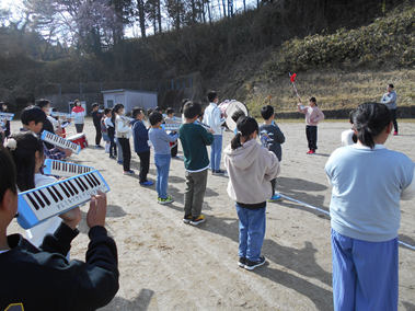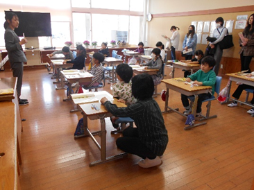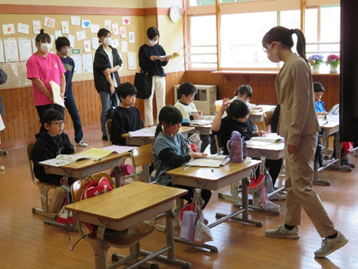 校舎案内をしてもらったり、伝言ゲームやマイムマイムを踊ったりするなかでだんだんと距離が縮まり、新たな友達との交流の輪が広がった小小交流になりました。