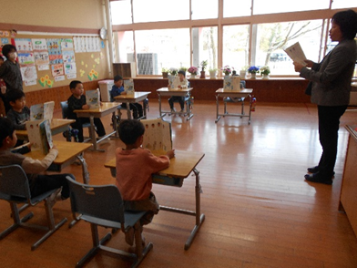 11月13日に国語科の学習で、平田村学校司書の上遠野さんに企画していただいた「司書さんからの挑戦状」を行いました。絵本を使ったパズルゲームをしたり、本を当てるクイズをしたりして、楽しみながら図書館の利用の仕方や、本の探し方の学習を行うことができました。