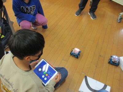 2022年3月9日 15時03分8日(火)、9日(水)の2日間、6年生は、ICT支援員の遠藤さんとプログラミング学習をおこないました。今回はロボットにいろいろな動きをさせるための仕組みやその方法を学習しました。子どもたちは、プログラミングを理解し、ロボットを動かしたり、音を出したりしていました。