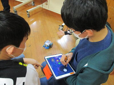 8日(火)、9日(水)の2日間、6年生は、ICT支援員の遠藤さんとプログラミング学習をおこないました。今回はロボットにいろいろな動きをさせるための仕組みやその方法を学習しました。子どもたちは、プログラミングを理解し、ロボットを動かしたり、音を出したりしていました。