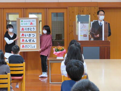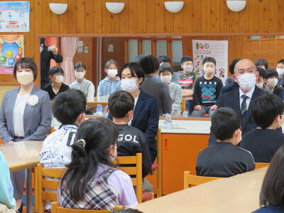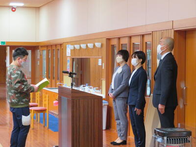 2022年4月6日 16時33分着任式があり、小平小学校へ着任した3人の先生を紹介しました。