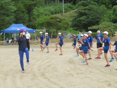 2022年8月5日 09時40分8/2(火)、ひらたスポーツクラブが主催となって「トップアスリート ランニング教室」が開かれ、5・6年生を中心とした子ども達が参加しました。日本を代表する2人のトップアスリート(天下谷真弓先生、佐藤真有先生)が陸上競技の指導をしてくださいました。