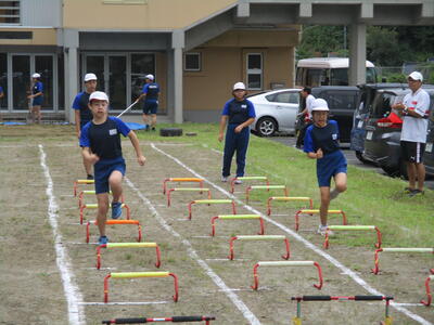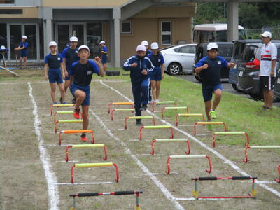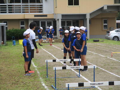 2022年9月8日 16時02分5・6年生が陸上練習を行いました。前半は全体練習。後半は種目に分かれての練習です。子ども達は、100M走、800/1000M走、走り幅跳び、80Mハードルの種目でから希望した種目に分かれ練習しました。