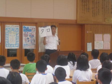 2015年8月31日 12時18分 本日、全校朝の会を行いました。今日は【校長講話】として漢字の成り立ちについて話しました。中国での研究、そして、それに対抗した日本の研究等に話が及びました。講話を通して、日々の学習の中で、常に新しい疑問点を見つけ出し、自ら進んで学習に取り組むことの大切さを伝えました。