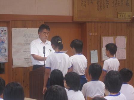 また、賞状伝達では、8月19日(水)に行われた地区音楽祭の賞状と、夏休み中に行われたサマーショートボランティアの修了証を渡しました。