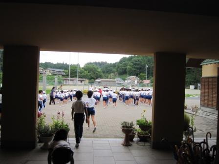 本校では、避難訓練を本日実施しました。地震を想定した避難訓練で、子どもたちが自由に遊んでいる休み時間に実施しました。体育館や多目的ホール等で自由に過ごしている中での避難の仕方について経験させることも大切なことです。子どもたちは、避難の仕方や経路などについて、放送を良く聞き、安全に避難をすることができました。