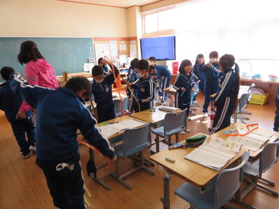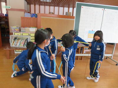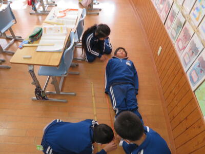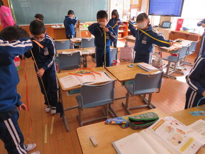 2024年1月26日 11時01分 2年生の算数は、「長い長さをはかってあらわそう」です。子どもたちはいろいろな物の長さや身長などを測りました。テープを用いたり、ものさしを何個もつなぎ合わせたりしながら長い長さをあらわしました。