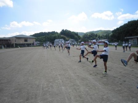 今日は、久しぶりに“夏の太陽”が顔をだしました。子どもたちは、意欲的に練習に取り組んでいました。