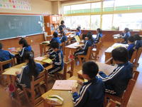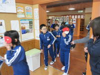 今日は、太陽が顔出し穏やかな天気でした。昼休みになると子どもたちが玄関前で縄跳びに取り組んでいました。縄跳びカードを見ていろいろな技に挑戦する子、短縄を使って長なわのように跳ぶ子、下の学年と競い合って跳ぶ子など思い思いに楽しんでいました。5年生が2年生の技に感心していたり、6年生と1年生が混ざって跳んでいたりと気温以上に温かな雰囲気が感じられました。