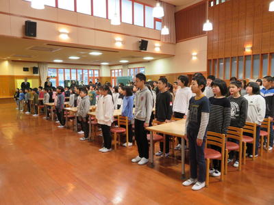 また、今年の干支である「子(ね)」の話もありました。子年は、新しい運気のサイクルの始まりであり、成長に向かって種がふくらむ年であり、未来への挑戦が始まる年でもあるそうです。子年の人は、「まじめに、コツコツと取り組む」という性格があるようです。102人の児童が、前を向いてコツコツと未来に向かって歩き出せるように、背中を押していきたいと思います。3学期も本校の教育活動へのご理解とご協力をよろしくお願いします。