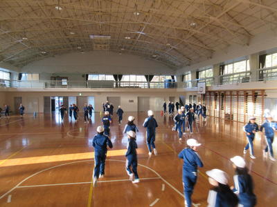 今日から3学期の朝マラソンが始まりました。3学期は校庭が使えない日は、3~6年生は体育館でマラソン、1・2年生は、児童玄関まで縄跳びに取り組みます。体育館での朝マラソンは、多くの子どもたちが集まりました。高学年を中心に一生懸命に走る姿が見られて、気持ちのよい朝を迎えることができました。