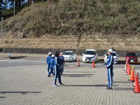 授業の後半は、白杖を使っての歩行体験です。目の不自由な方にとって、白杖は目の一部となります。目の前にある危険物を発見したり、進む方向を探し出したりすることができます。実際に階段の上り下りもしてみました。何気なく歩いている階段が、全く異なるものに変わります。介護する人の声を信じて一歩ずつ進みます。「1段降ります」「あと3段です」「降りました」など階段を上り下りする際も、介護する人の的確な声かけが、重要であることに気がつきました。