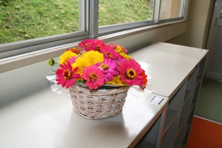 心の教育相談員が、自宅から花を持参し、校舎内にきれいに飾ってくれました。