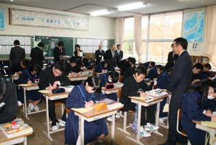 今回の研修会では、1年生の数学と3年生の社会の授業の様子を見ていただきました。