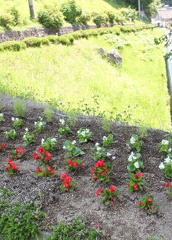 「花いっぱいコンクール」に向けて住民課から花苗が届き、花壇に植え込みましたが、しっかりと根付き、花も開き始めました。