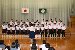 最後に合唱,英語弁論の夏休み中の成果発表が行われました。