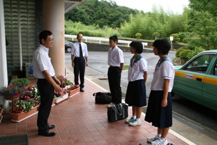 2015年8月28日 10時16分 石川町共同福祉施設ホールで開催される地区英語弁論大会に3名の生徒が学校を出発しました。夏休みに一生懸命に練習した成果を発揮して、堂々と表現してきてほしいと思います。