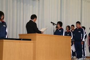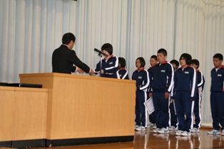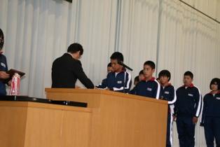 2015年10月2日 17時12分 漢字コンテスト、新人大会の表彰伝達が行われました。学習面、運動面での活躍が見られ、さらに結果も出はじめ、学習意欲、部活動への意欲も高まっていますので、さらに上をめざしてがんばってほしいです。