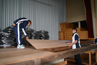 学校祭まで2週間を切り、各係の活動も本格的になり担当の先生と一緒にがんばっています。体育館では、会場係によってステージが設営され、いよいよ学校祭が始まるといった雰囲気になってきました。本番での各係の発表が楽しみです。ホームページにアップしている写真は、実行委員が一生懸命に撮影した写真です。