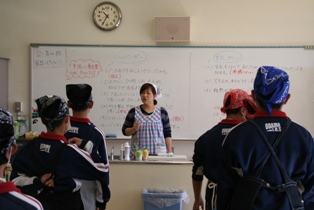 1年生の家庭科で調理実習が行われました。今回の実習は、洋食にチャレンジしました。多少ハプニングはありましたが、みんな大好きなハンバーガーを作るとあって、楽しく実習ができ、おいしく食べることができました。デザートの豆乳プリンも上手にできました。今後は、和食や郷土料理などにも挑戦するようです。