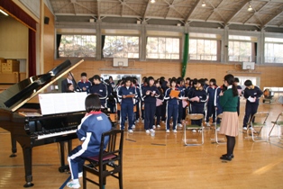 合同練習スタートの時のあいさつは緊張もあって、小さな声でしたが、終わりのあいさつの声はとても大きくすばらしいものでした。今後も合同練習を重ねて、ひらた清風中学校の開校式ですばらしい歌声で校歌が歌えることを期待したいです。