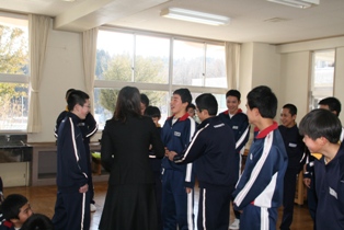 2016年1月29日 08時33分 蓬田中の1、2年生をお迎えして、第1回目のひらた清風中校歌の合同練習が行われました。体育館には、ひらた清風中の制服やジャージなども展示され、小平中生、蓬田中生一緒にがんばろうというう雰囲気の中、お互いが交流を楽しみながら、一生懸命に校歌の練習に励みました。