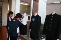 ひらた清風中の制服・運動着の見本ができあがり、村内小中学校で展示されることになりました。