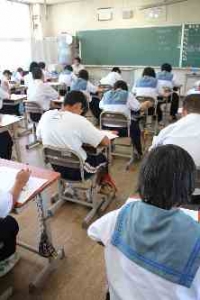 全学年とも、保健体育、数学、英語、理科の4教科のテストが行われ、一生懸命問題に取り組んでいます。