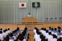 今日は、2時間の授業の後、中体連県大会に出場する柔道部員の壮行会を行い、その後、終業式、学級活動という流れで進めています。この1学期、授業や部活動はもちろんのこと、生徒会の各種行事、そして様々な体験活動等を通して、生徒たちの活躍、成長する姿を見ることができました。