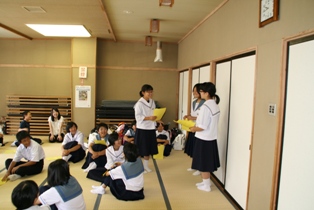 1年生は6月にムシテックワールドでの森林環境学習を行っていますが、今回は2回目で、平田村中央公民館を会場に、国語と理科の授業交流を行いました。