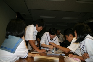 授業が進むに従い、両校の生徒がうち解け合って話をしている様子も随所に見られるようになってきました。