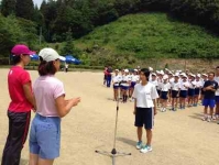 本日午前9時から、炎天下のもと、平田村総合運動場にて、二瓶秀子・吉田真希子両先生をお招きし、村内の小中学生およそ100名を対象とした陸上教室が開催されました。