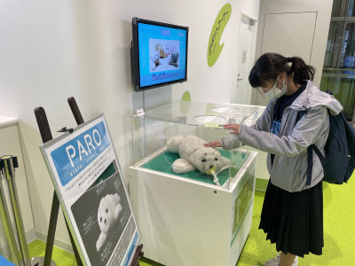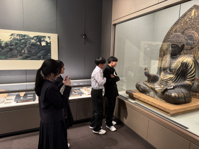 した。また、1,2年生は美術作品、3年生は書道、校内文化祭で作ったシンボルマークを展示して