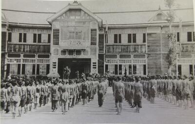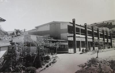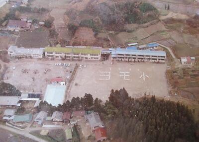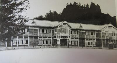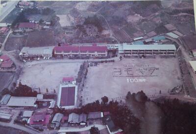 昭和20年(1945年)の朝の会の様子 昭和33年(1958年)の校舎