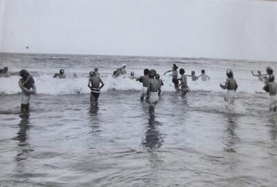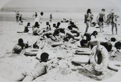 昭和50年(1975年) 授業風景 薄磯海岸でスイカ割り