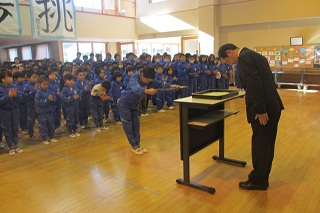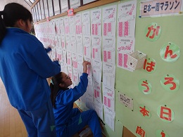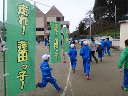 2014年12月4日 12時49分 蓬田小学校では、毎週火曜日と木曜日の大休憩時に、「マラソンタイム」の時間を設けて、全校生が一斉に走っています。平田村の教育方針の1つである「駅伝立村」を受け、長距離走をみんなで取り組んでいます。マラソンカードにシールを貼ることによって、一人一人が自分の記録を確かめながら、目標に向かっています。これから、本格的な冬を迎え、降雪により校庭が使用できなくなる前に、たくさん記録を伸ばしてほしいと思います。