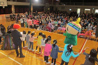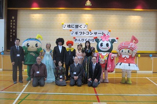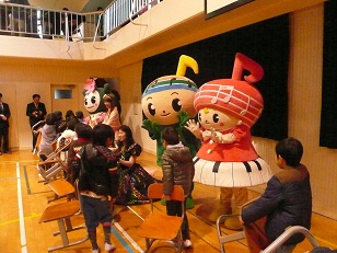 ゆるキャラ勢揃いで大盛り上がり 御礼の花束贈呈!!