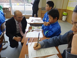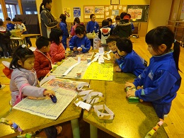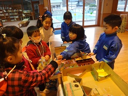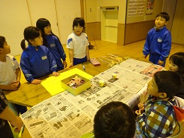 2014年11月26日 13時08分 11月26日(水)の3校時に、幼小交流学習として、1年生と蓬田幼稚園児の交流学習が行われました。小学校では、一番年下の学年ですが、この時ばかりは表情が一変。幼稚園児を目の前に、すっかりお兄さん、お姉さんの顔つきに変身しました。自分達の用意したコーナーの説明を熱心に行い、年下の園児と上手に関わることができていました。いつもは世話をされる方ですが、今日は、しっかりとお世話をすることができ、1年生の成長した姿を見ることができました。