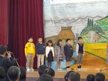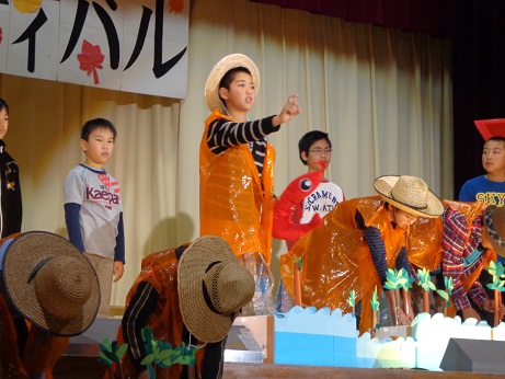 朝早くから会場にお集まりいただいた保護者の方々や来賓の方々の大きな拍手や笑い声が、子ども達の緊張をほぐしてくれたのだと思います。  大勢の観客の前で舞台に立ち、自分たちの演技を精一杯することで、子ども達は大きく成長することができたことと思います。この貴重な体験を今後の学校生活に生かせるよう、期待したいと思います。保護者の皆様には、衣装の準備等で、いろいろとご協力ありがとうございました。心から感謝申し上げます。
